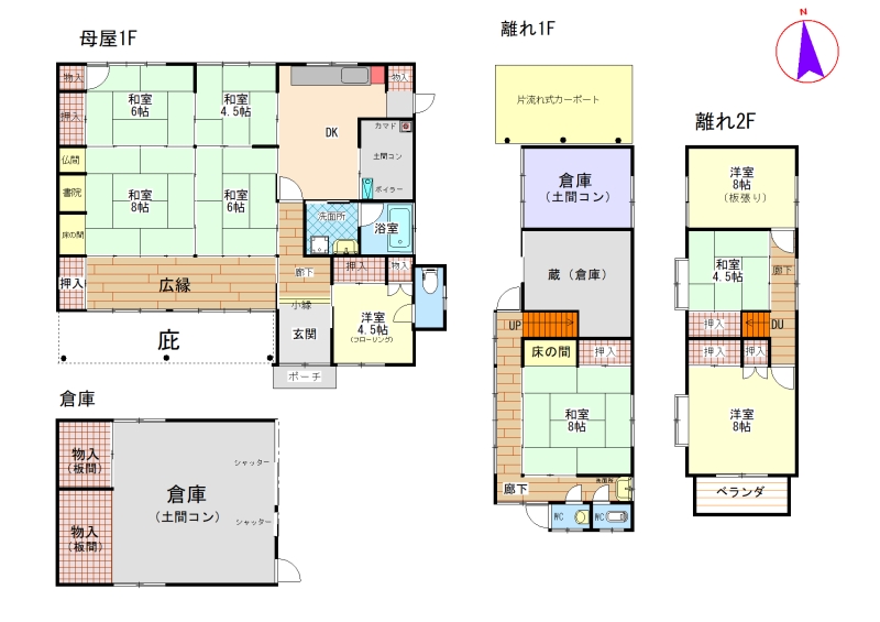 離れ:木造2階建て(106.91㎡)/倉庫(42.18㎡)/山林(591㎡)/